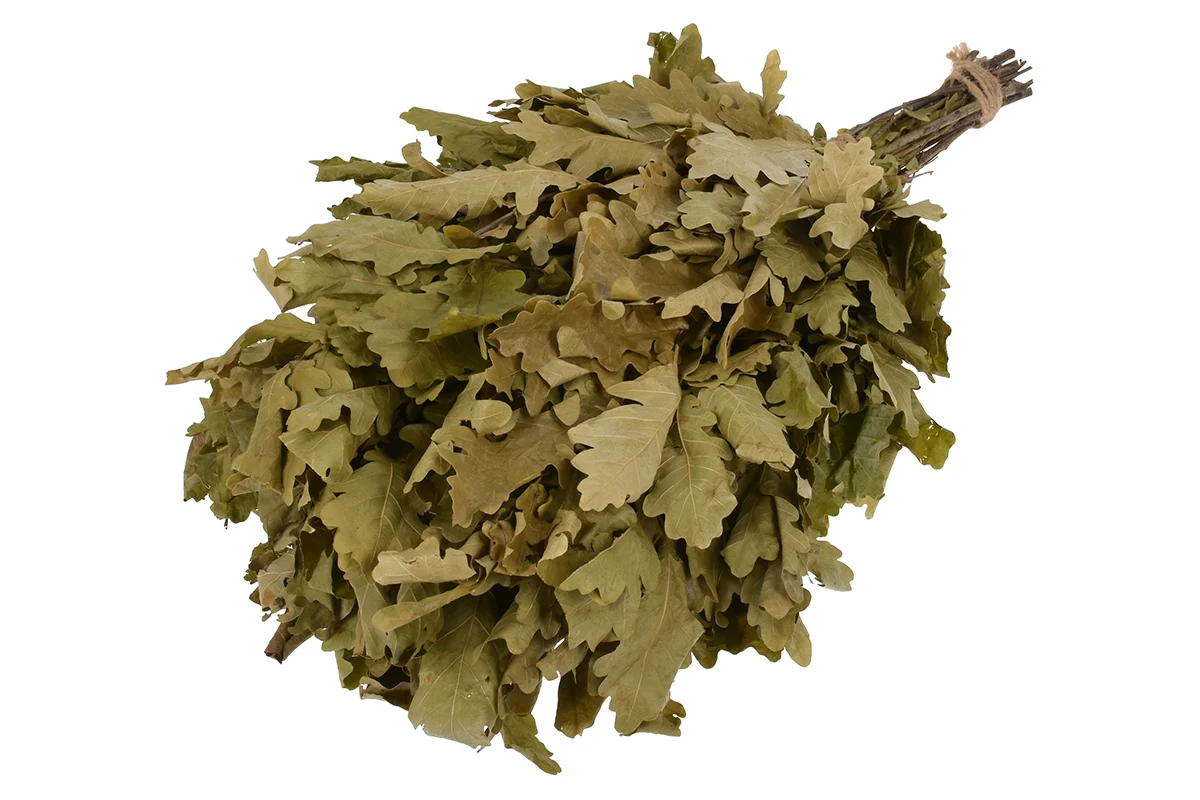 Дуб — это крепость, мощь и целебная сила в одном флаконе. Его листья толстые, широкие и прочные, не рвутся от первого же маха, не сминаются, и отлично держат форму. А ещё они будто бы созданы специально для того, чтобы «шлёпать» по телу, разгоняя кровь и вытягивая из мышц усталость.